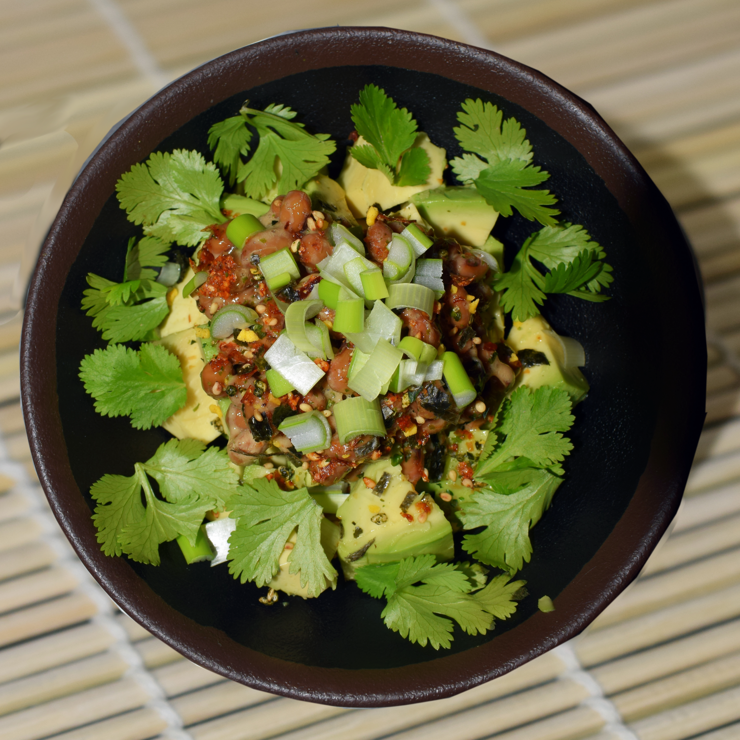 Salade Natto avocats coriandre